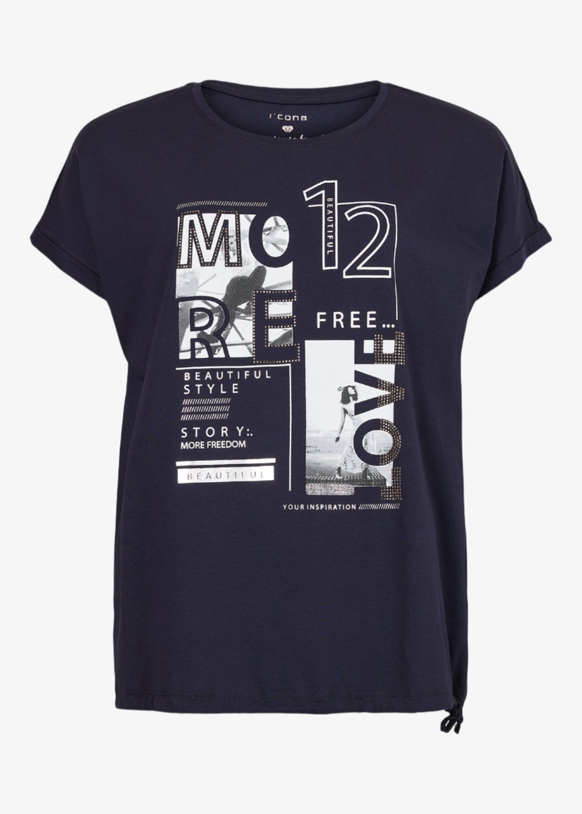 I'Cona Long Zip Front Jacket with Graphic Print in Navy