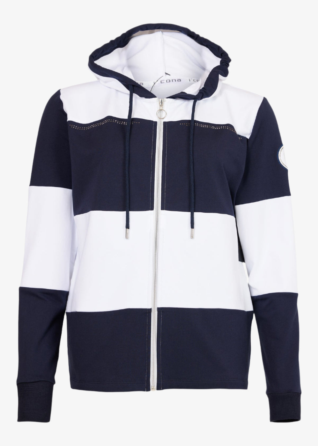 I'Cona Striped Zip Front Hoodie in White/Navy