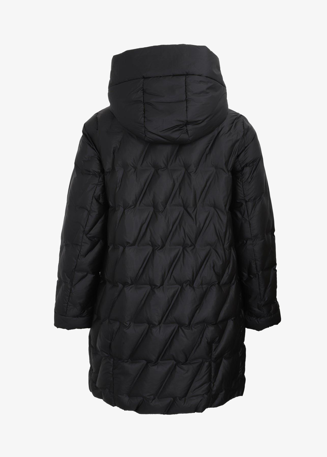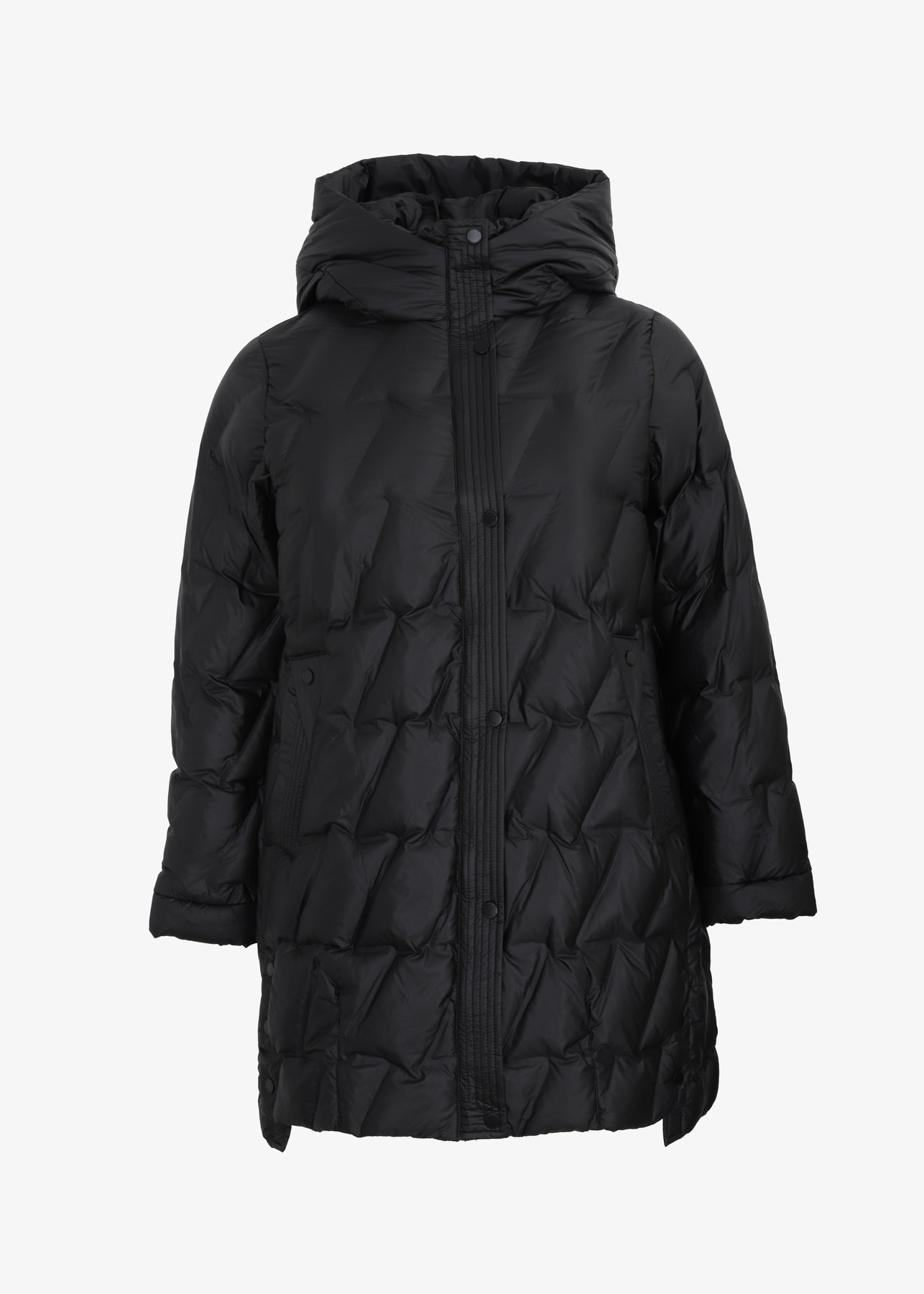 • Women’s quilted jacket – regular fit, above-knee length with a hi-lo hem