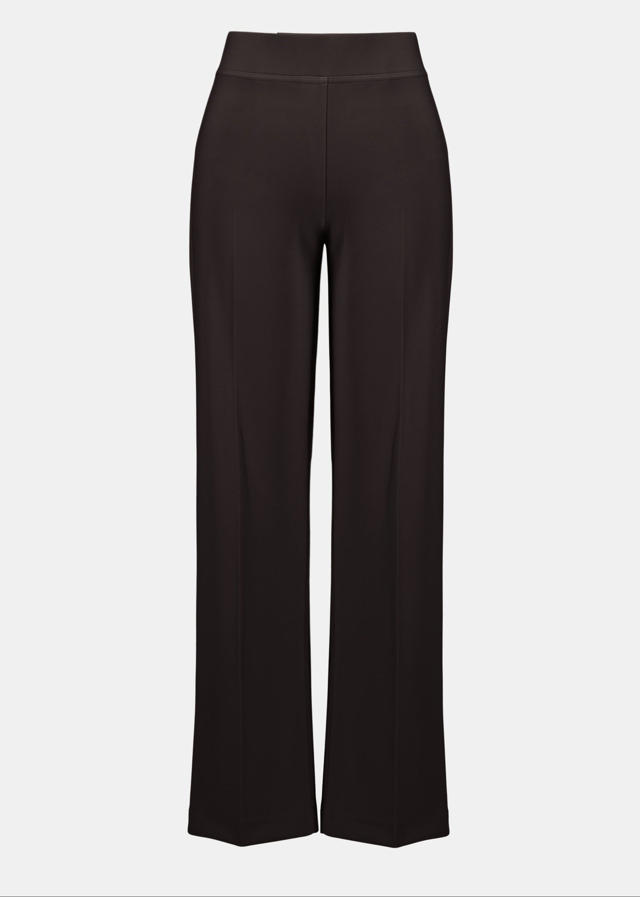 Create the illusion of longer legs with a slightly higher waistline in these wide-leg pants. The 32-inch inseam creates a lengthening effect especially when paired with a tucked-in blouse and fashionable heels. The silky knit fabric and elasticized waistband offer class with unparalleled comfort.