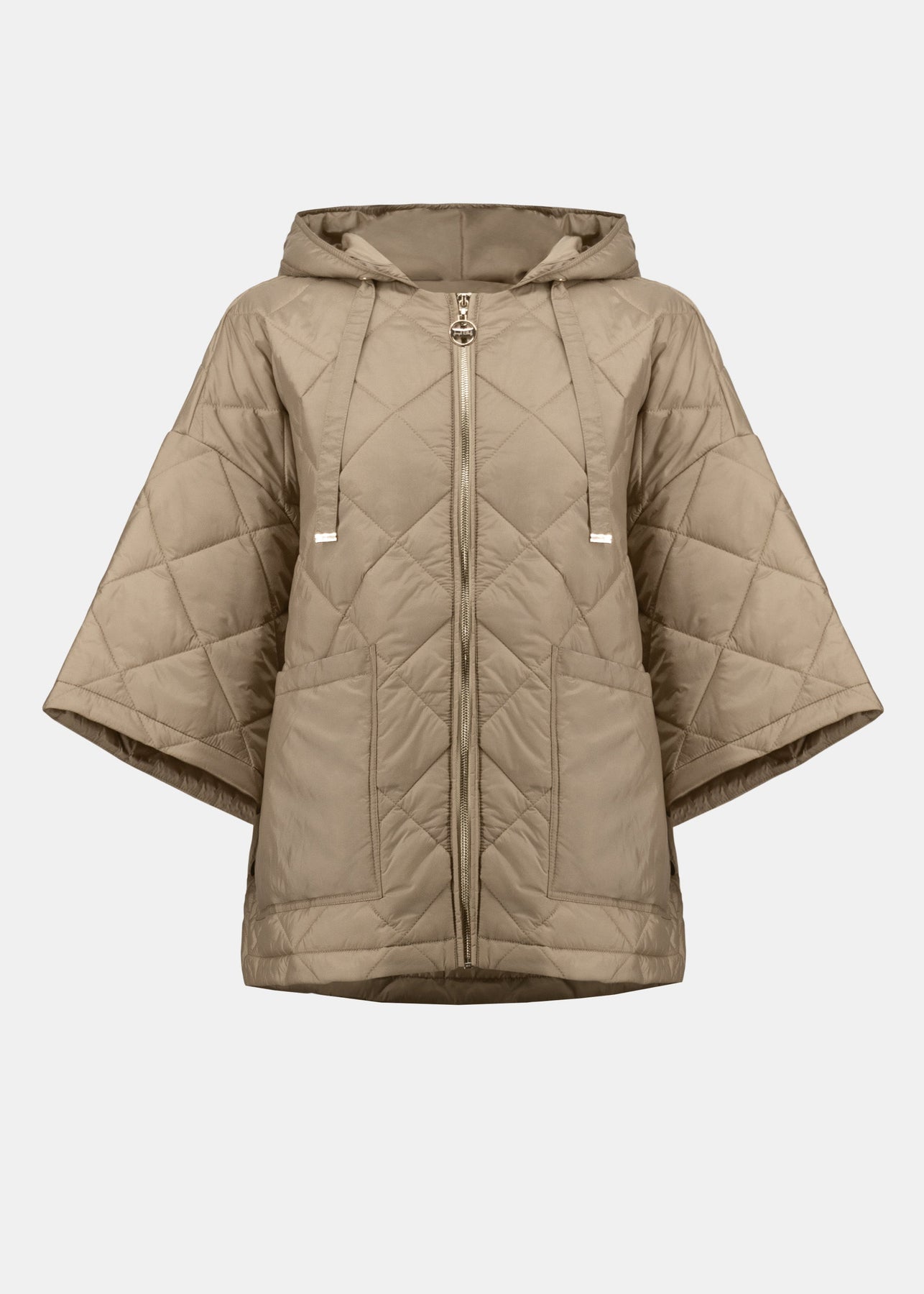 Showcasing a woven diamond pattern and elegant flared sleeves, this hooded quilted jacket brings sophistication to cooler days. Designed for both style and function, it’s finished with a zip-front closure, patch pockets, and side vents for ease of movement.