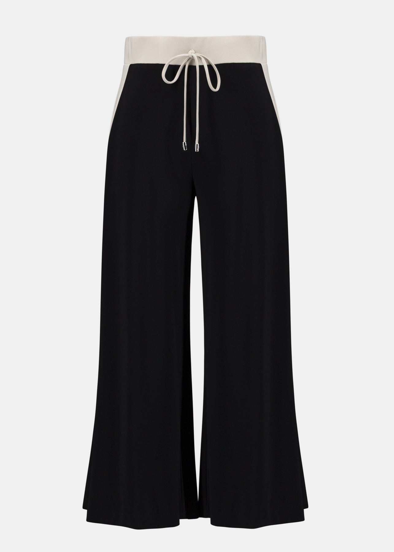 Designed with movement in mind, these Joseph Ribkoff silky knit pants feature a bold color block design and a wide leg cut. The covered elastic waistband includes a drawstring with JR cord ends, while side inserts with small slits offer extra ease.