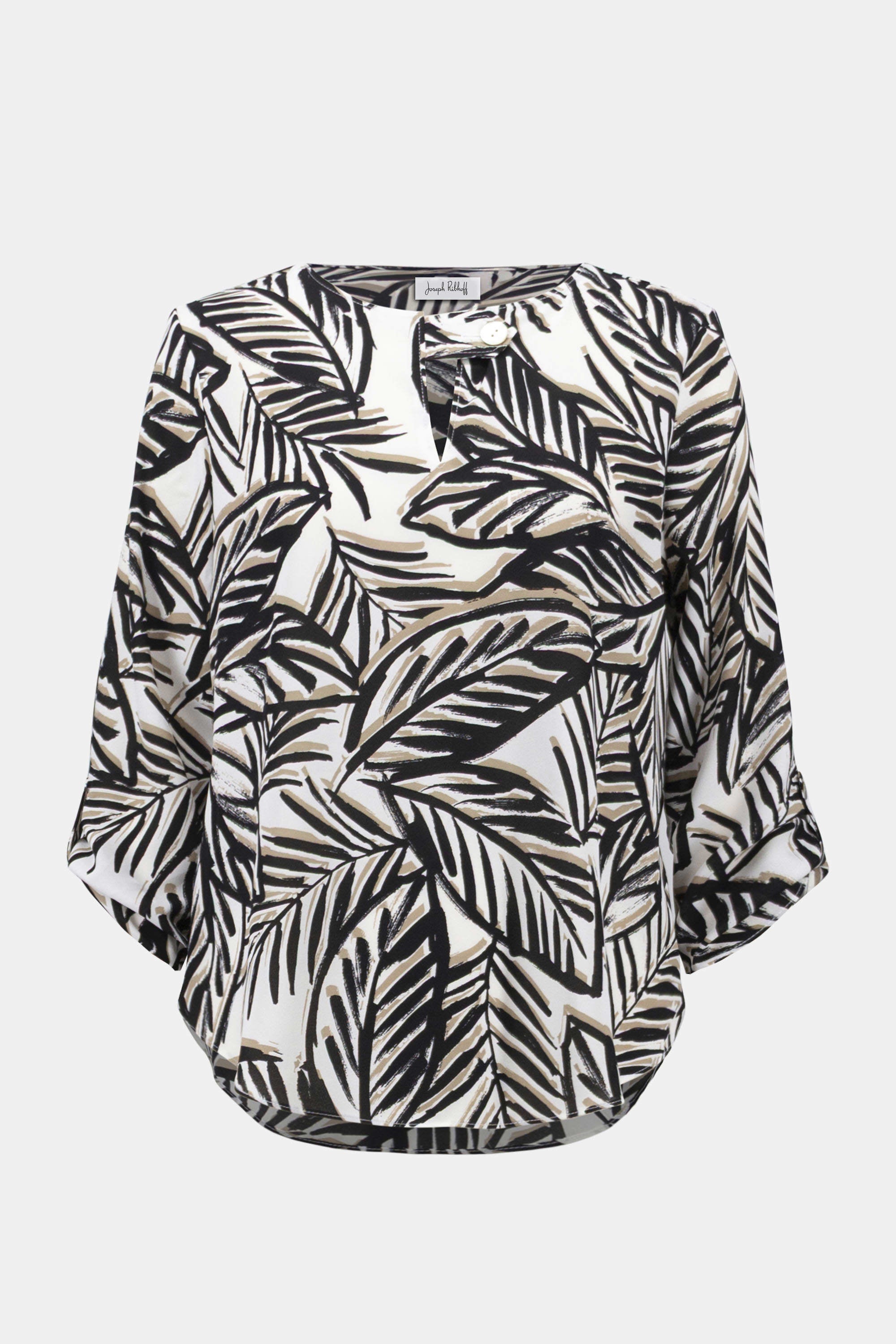 This Joseph Ribkoff fitted short blazer in black is crafted from bonded silky knit fabric, offering a polished silhouette. It showcases a notched shawl collar, understated three-quarter bell sleeves, and practical pockets, perfectly designed to elevate your ensemble with refined structure.