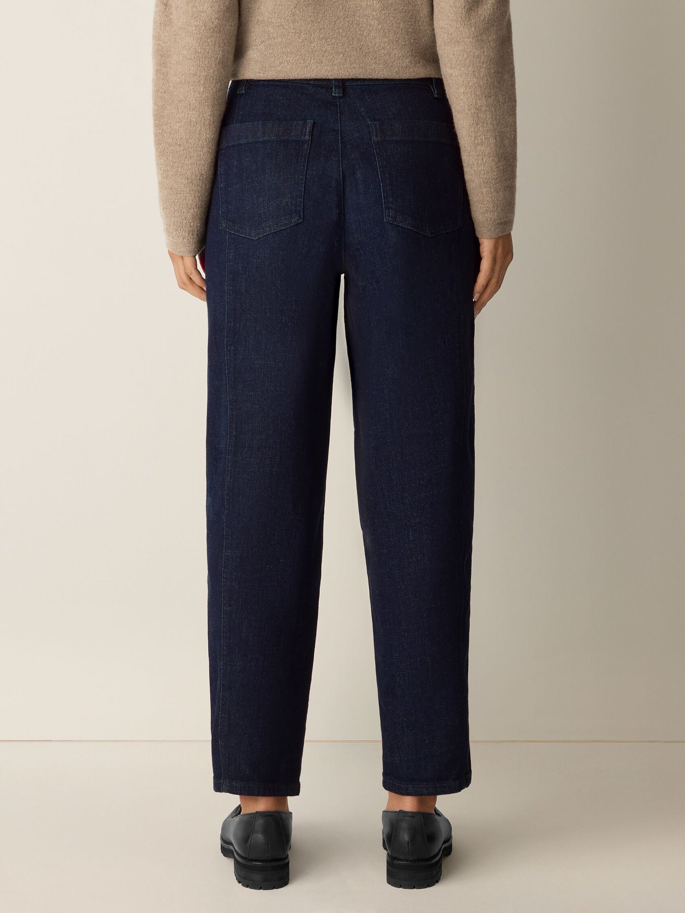 Eileen Fisher Cotton Stretch Denim Ankle Lantern Pant in Deep Indigo