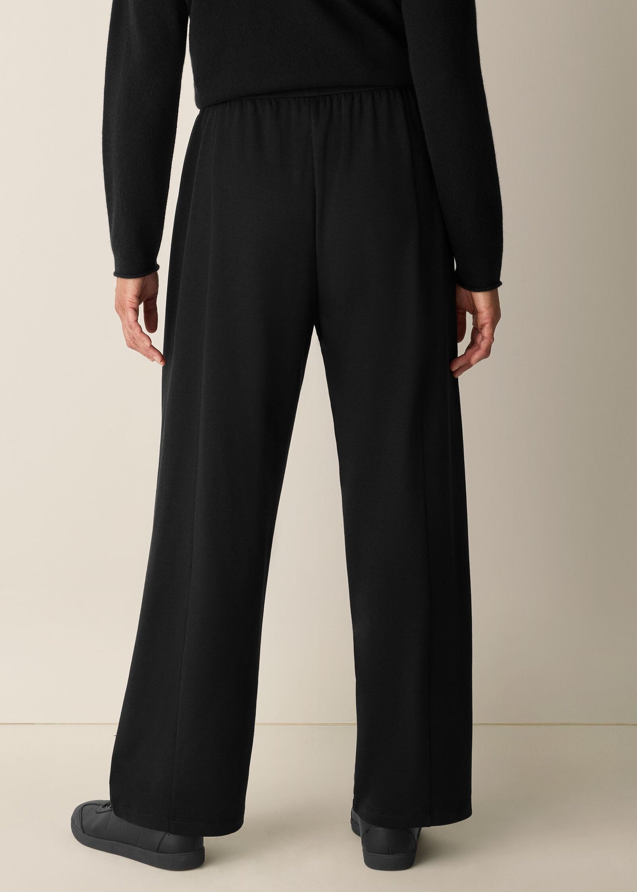back view of plus size Eileen Fisher Cozy Brushed Terry Hug Straight Pleated Ankle Pant in Black