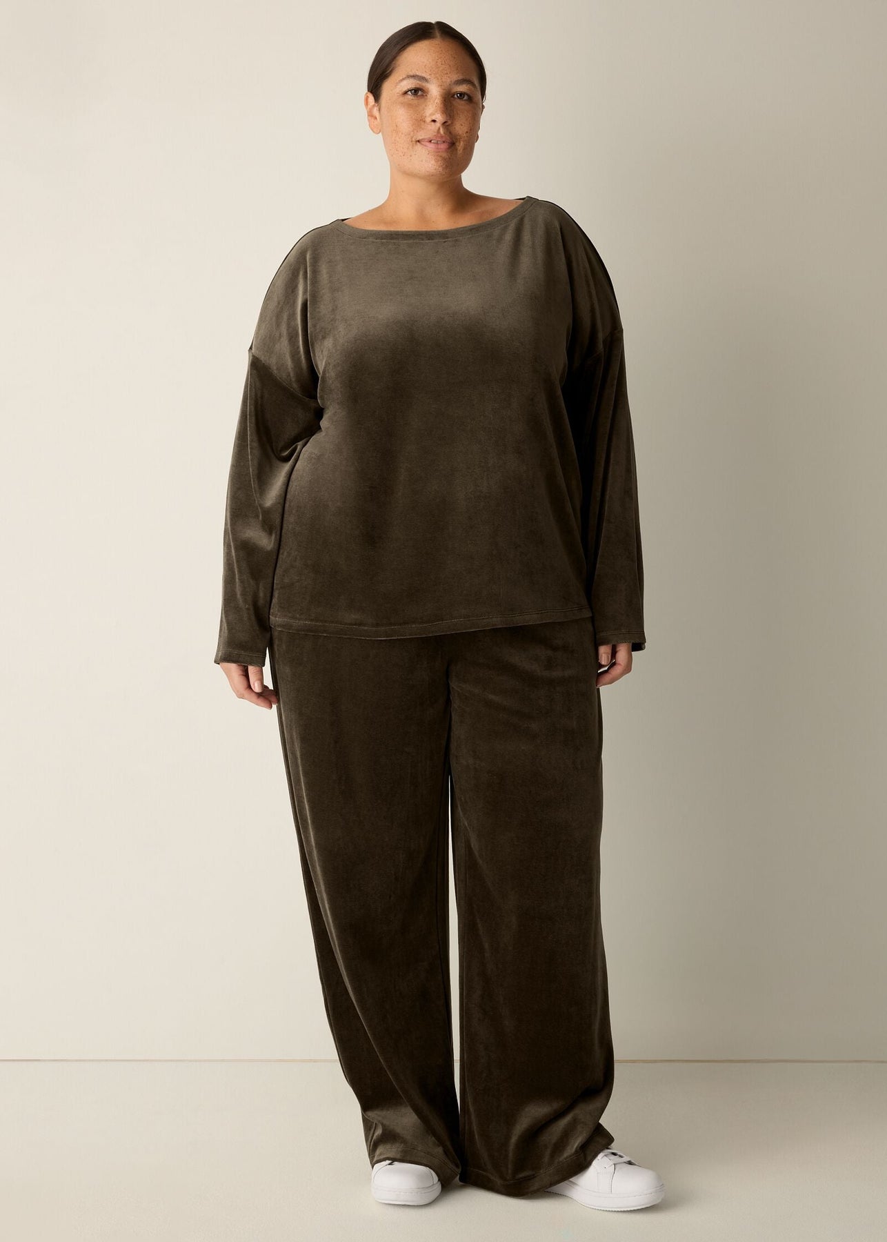 Easy and elevated. An effortless bateau neck top, transformed by the plush texture of our velvety velour. Pair it with the matching pant to make it a set.
