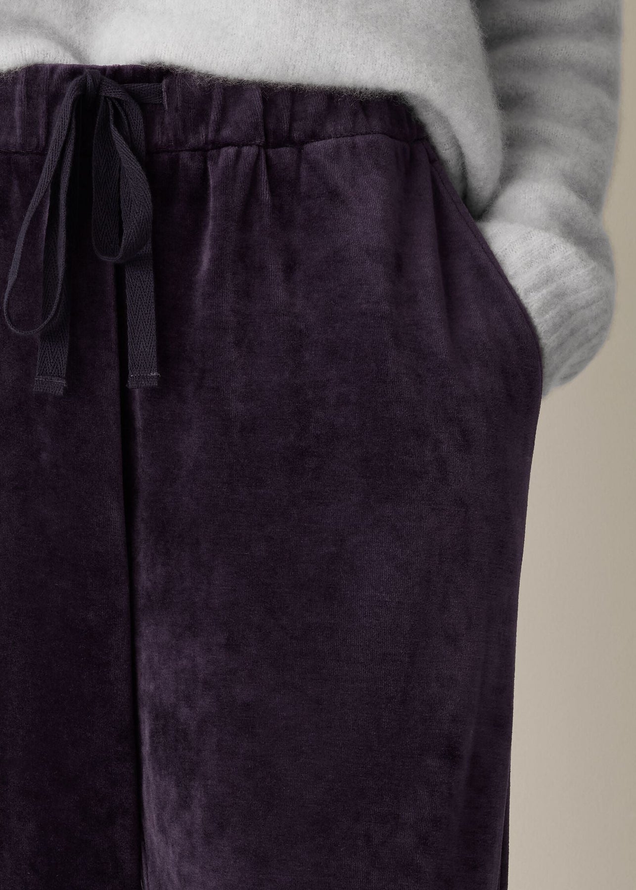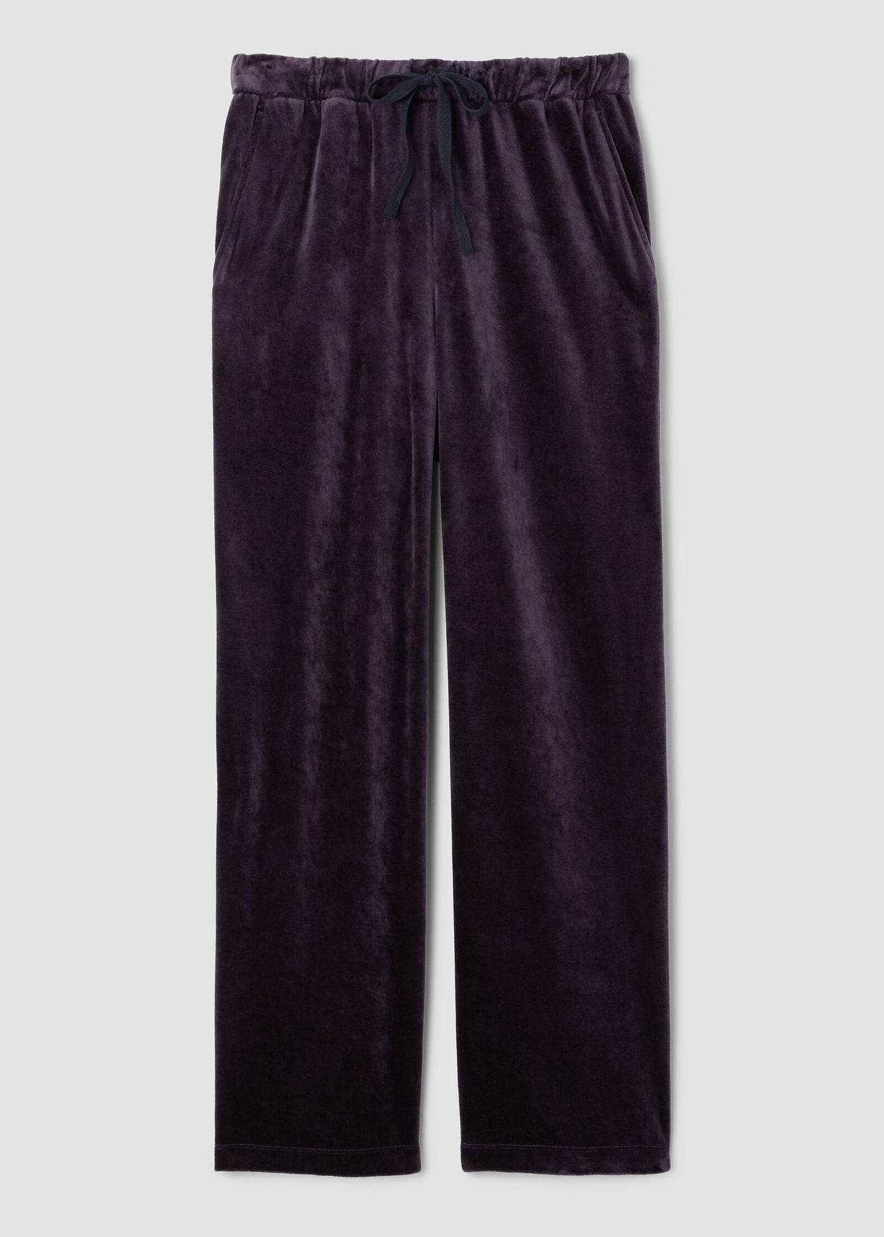 Elevated loungewear. A cozy wide-leg pant with a drawstring waist and pockets, in a soft velour knit made with organic cotton. Pair it with the matching top to make it a set