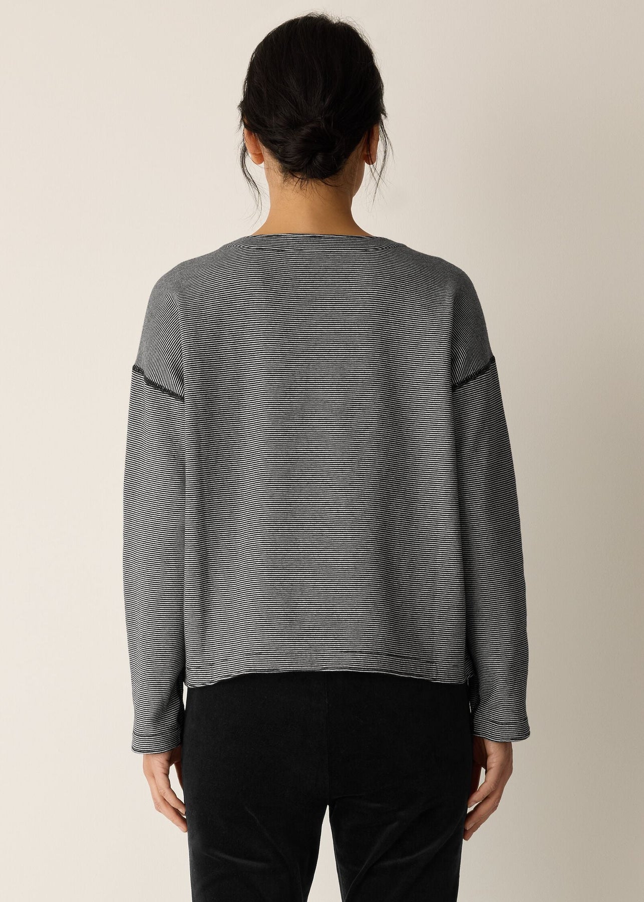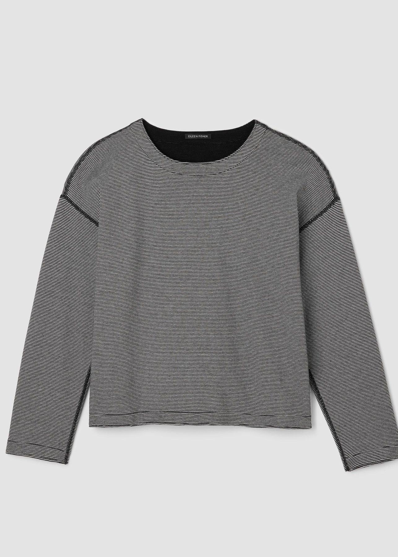 An Eileen Fisher relaxed top you can reverse to change up the look—solid on one side, striped on the other. Subtly textured on both sides in soft organic cotton.