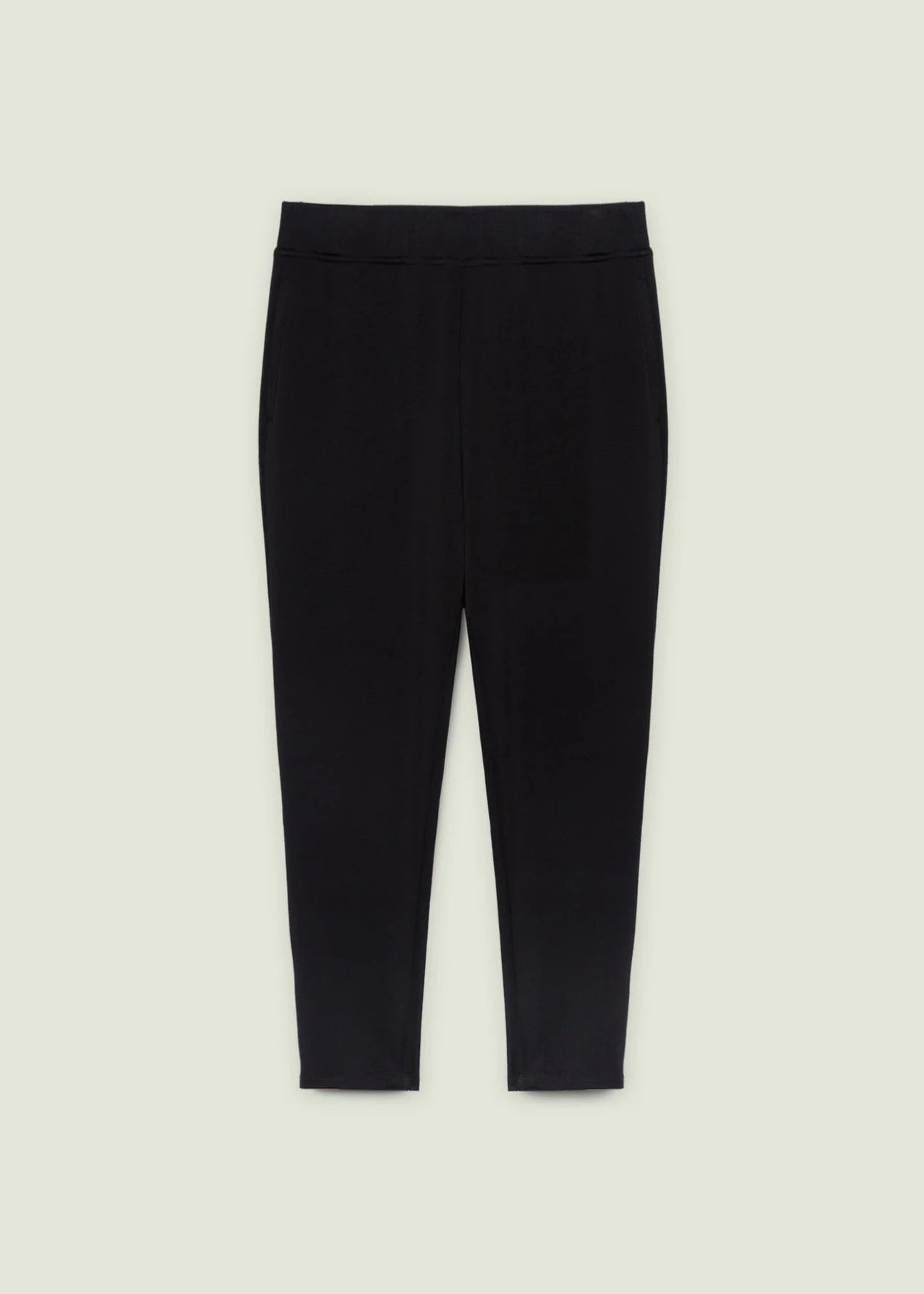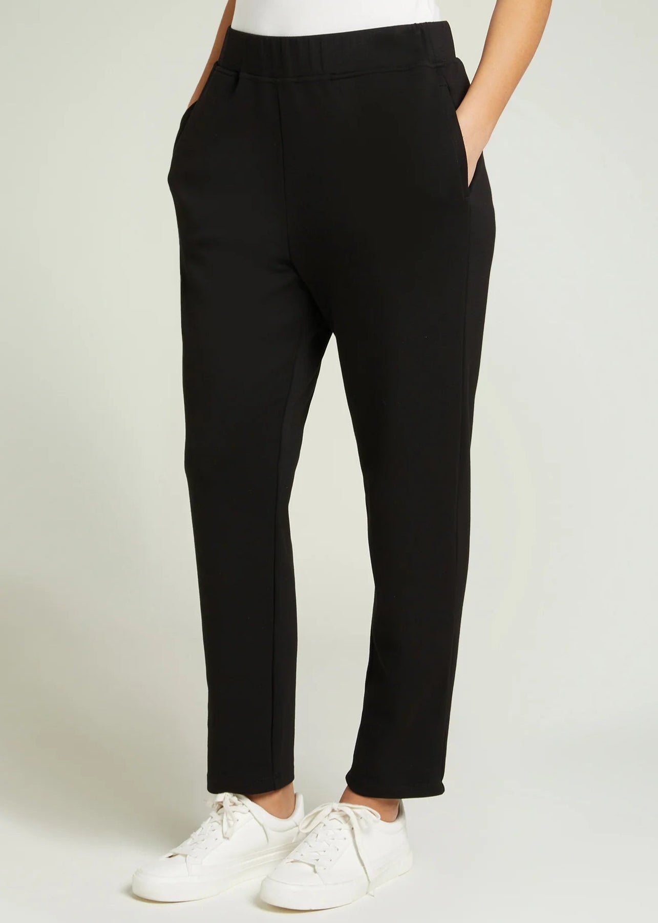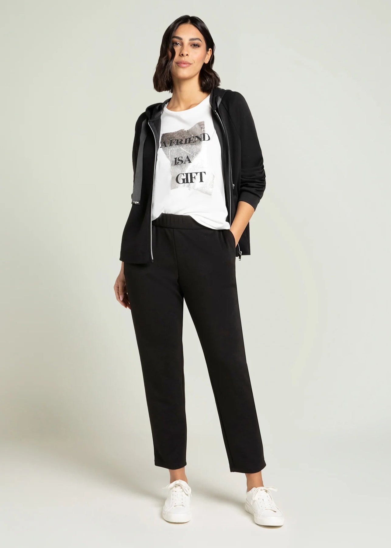 Luisa Viola comfortable fit jogger pants in soft touch scuba fleece. Regular waist, extendable waistband with elastic insert inside, "pull-on" construction without zip, welt pockets inserted in the side cut. Stretch fabric.