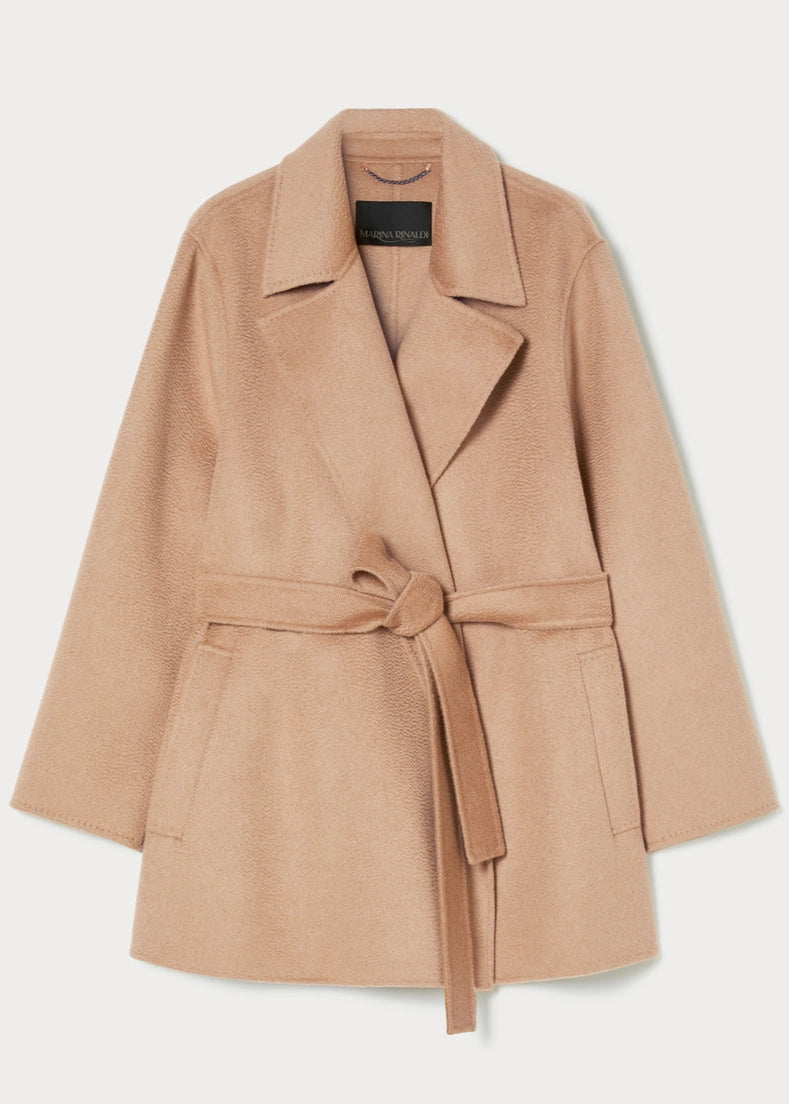 This water-repellent down puffer jacket features a cocoon silhouette that seamlessly combines practicality with elegance. Crafted from downproof taffeta, it offers a padded interior for warmth. The design includes a shawl collar with an attached hood, hidden snap-button closure, and discreet welt pockets for a refined finish.