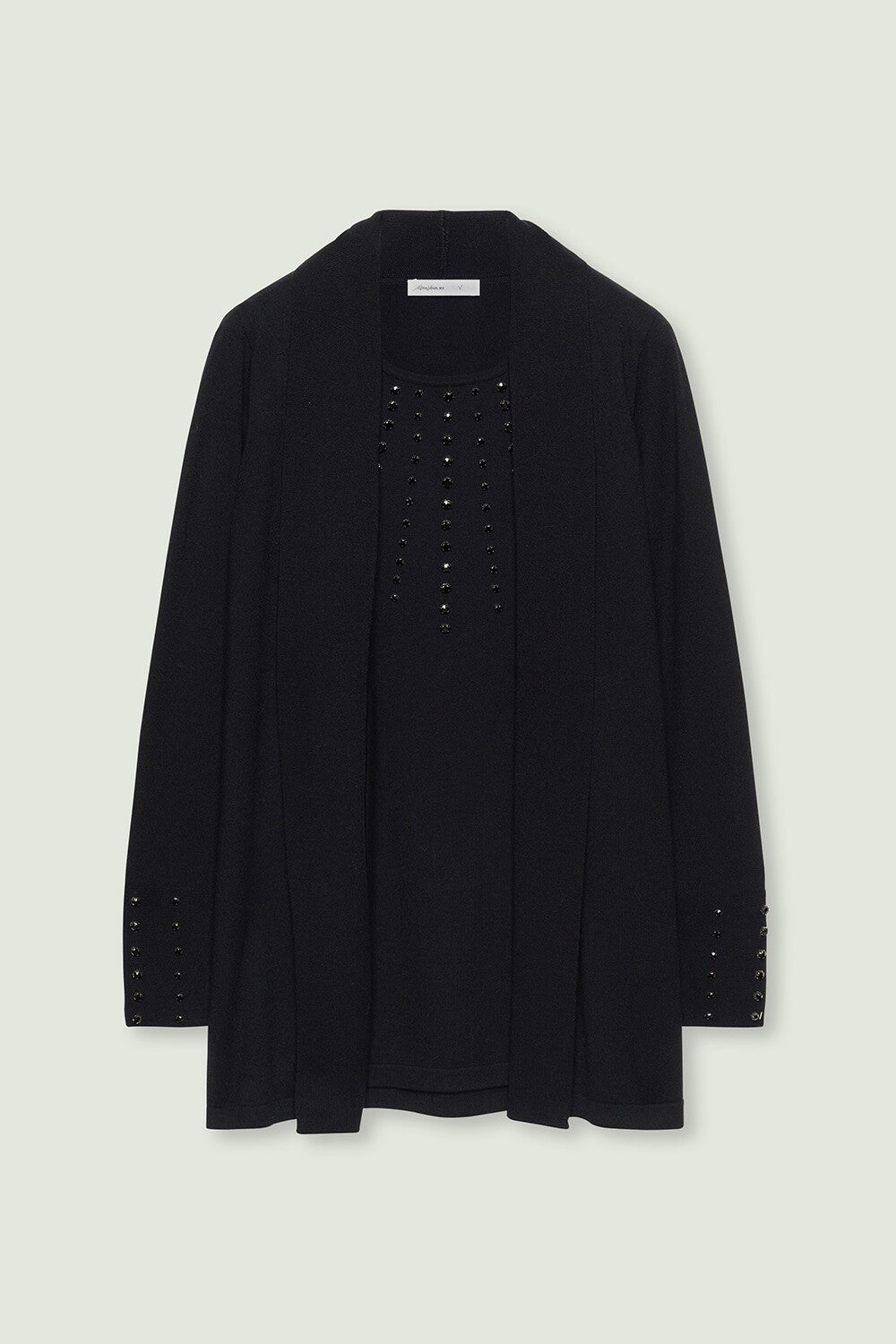 Luisa Viola Long Sleeve Swirl Print Pullover with Sequin Inlay in Black Cream