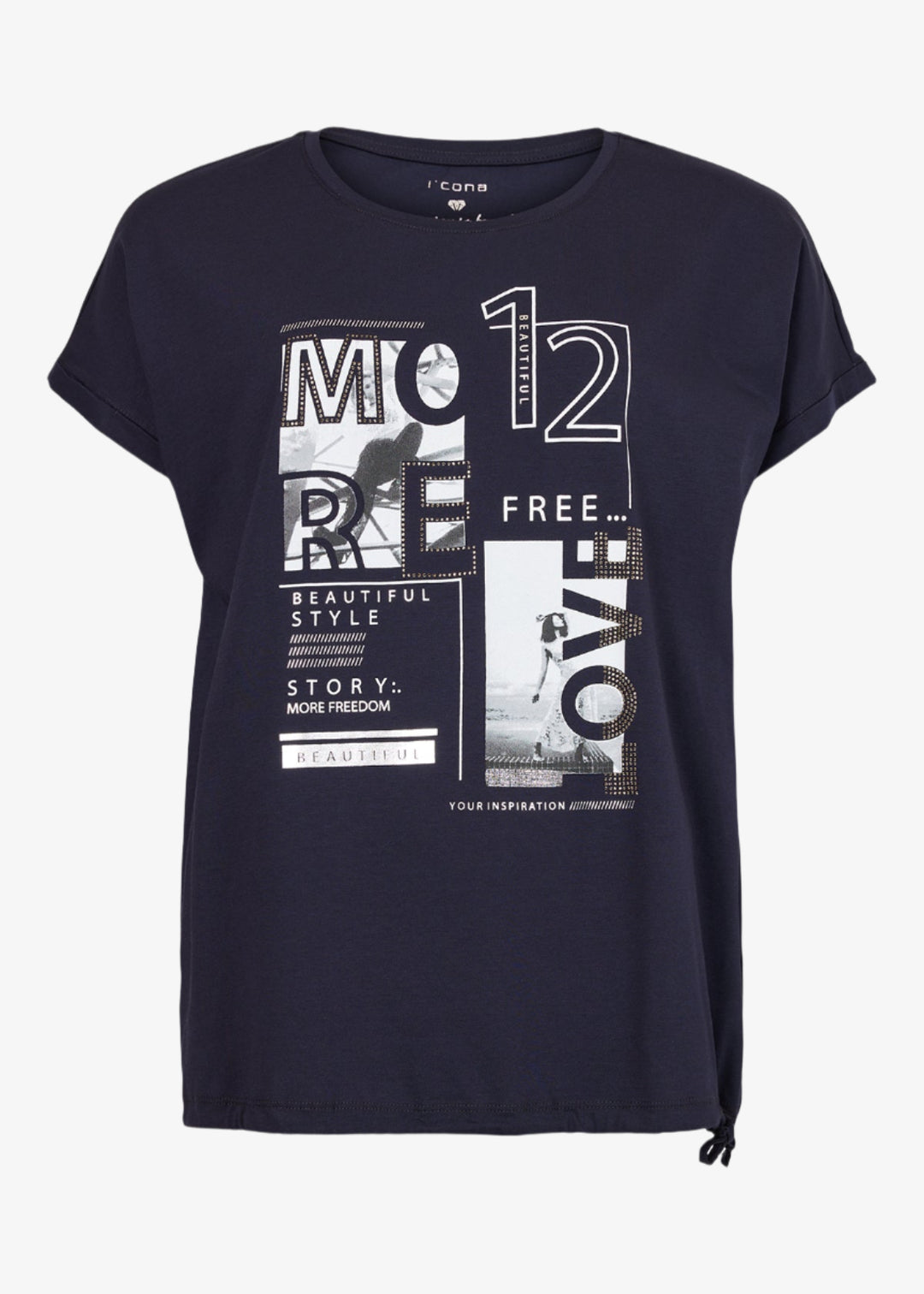 I'Cona Graphic Tee with Drawstring Hem in Navy