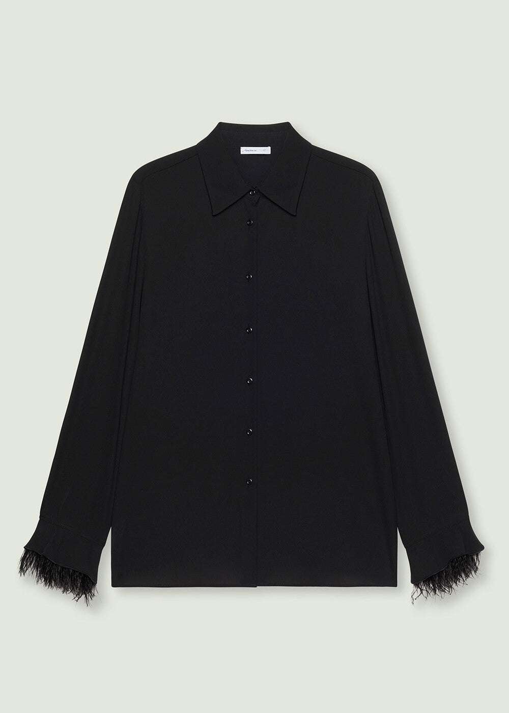 Elevate your wardrobe with this Luisa Viola long-sleeve blouse, featuring a detachable feather trim for versatile elegance. This refined blouse offers timeless style with a touch of distinctive elegant flair.